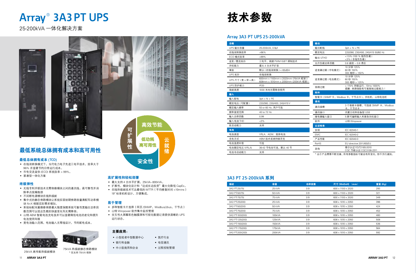 | UPS 输出容量 | 25-200kVA, 0.9pf |