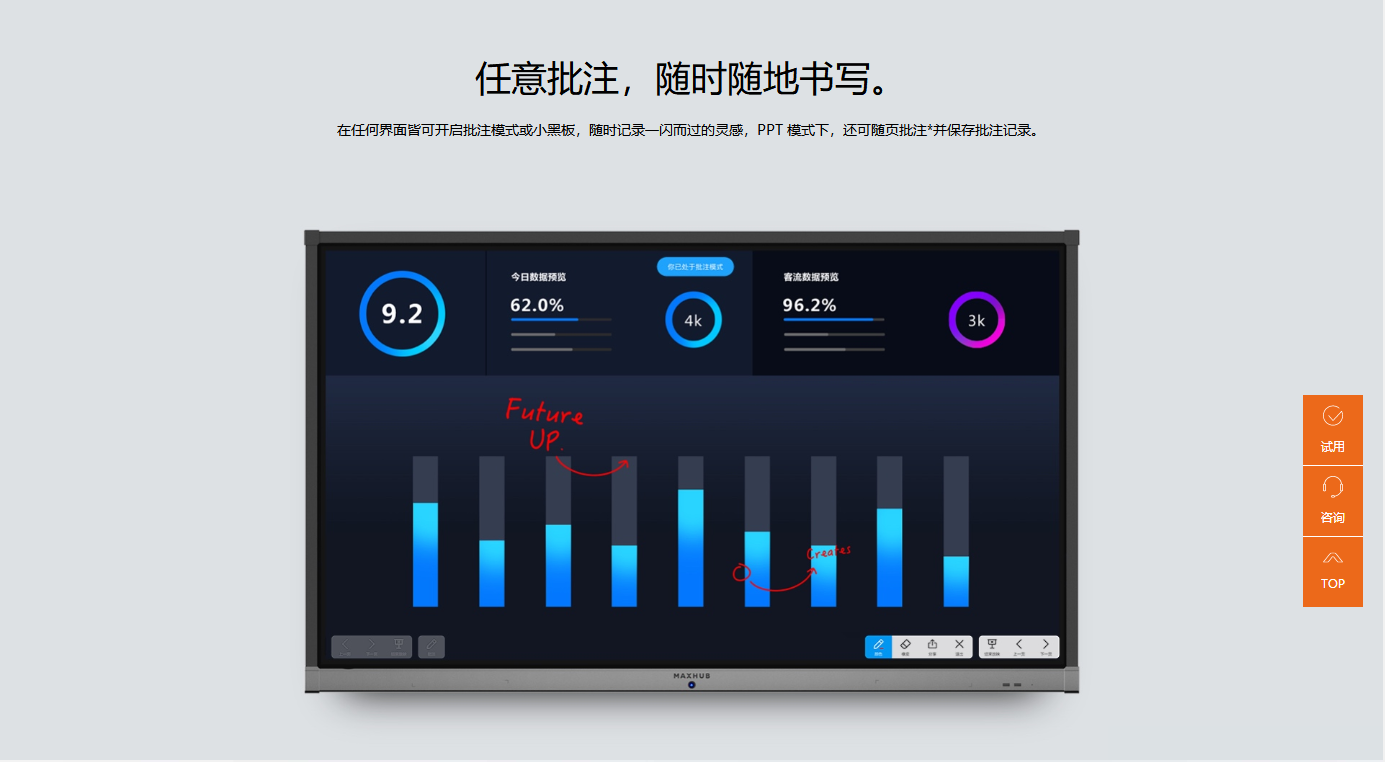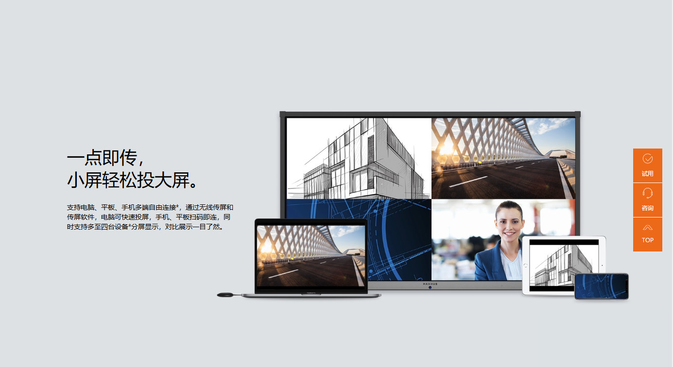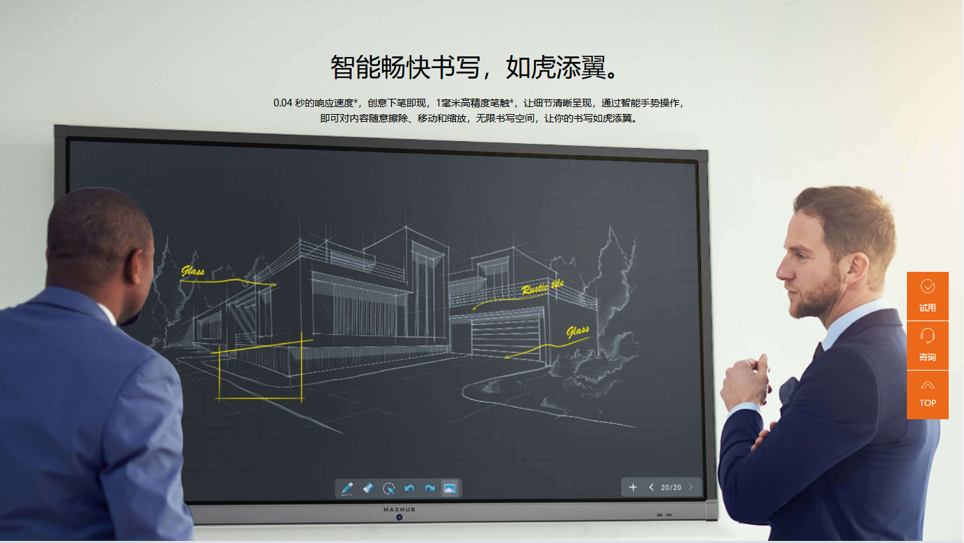 触摸技术:红外 触摸点数:20点 书写工具:手指+不透光物体(≥2mm) 触摸精度:±1mm |