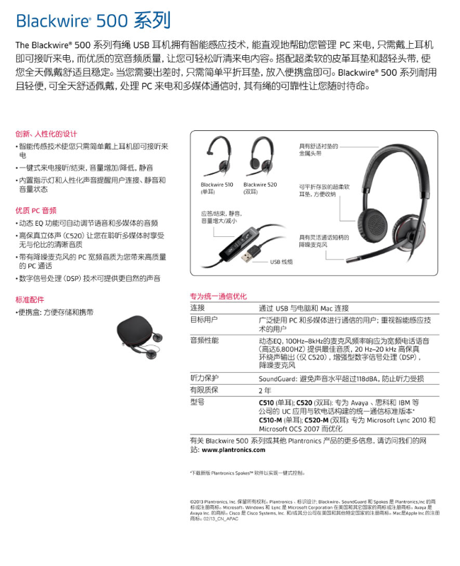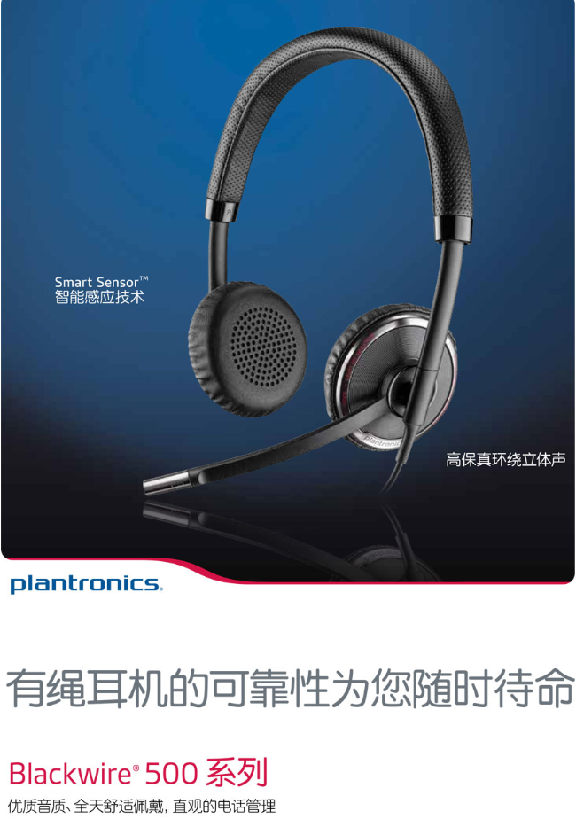 Blackwire 500 系列 USB 有绳耳机采用 Smart Sensor 技术,可帮助您直观地管理 PC 通话。您只需佩戴耳机即可接听来电;凭借其出色的宽带音质,您可以清晰地听到每个字词。有了超软的人造革耳垫和轻巧的头带,您将享受到全天舒适和安全的佩戴体验。当您需要外出办公时,只需将耳垫平整折叠,即可将其收纳在附带的便携袋中。便携耐用的 Blackwire 500 系列提供随时随地的有绳可靠性,可供您全天在 PC 通话和多媒体功能之间舒适切换。